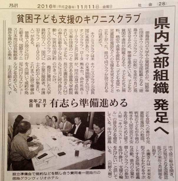 徳島新聞に設立準備委員会の記事が掲載されました。